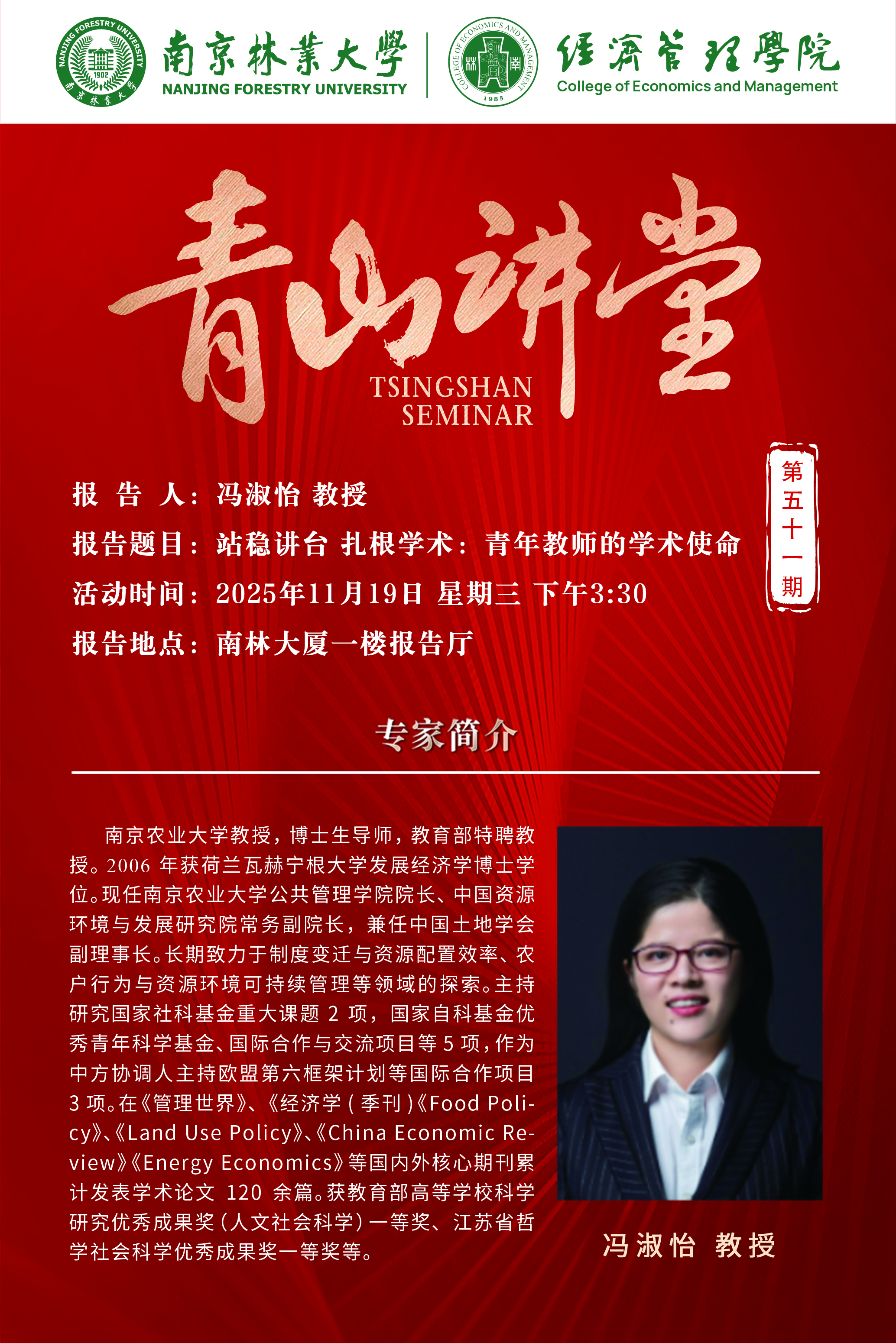 青山讲堂第五十一期:冯淑怡 (南京农业大学)