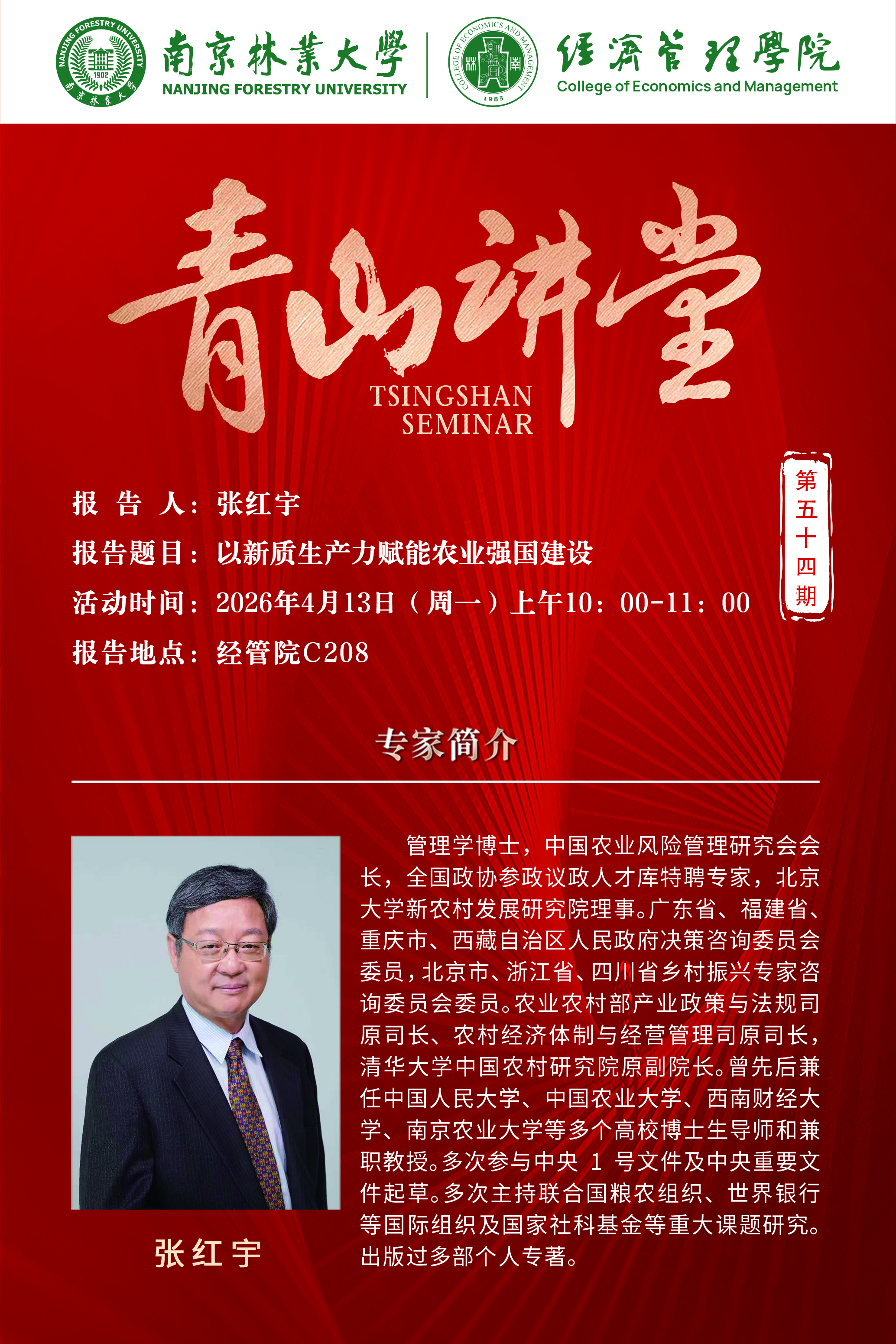 青山讲堂第五十四期:张红宇 (北京大学)